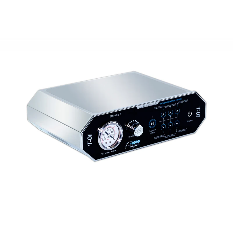 T-01 to innowacyjne urządzenie umożliwiające przeprowadzenie skutecznych i komfortowych zabiegów masażu próżniowego dzięki wyposażeniu w trzy głowice rolkowo-próżniowe o różnej wielkości - 77 mm, 56 mm i 34 mm. A wbudowana pompa próżniowa, stworzona w oparciu o najnowsze technologie, pozwala na cichą pracę i wysoką wartość osiąganej próżni.